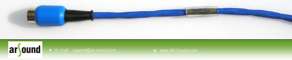 The SkyLink is directional interconnect: The source side is marked with the logo "AR Sound SkyLink"